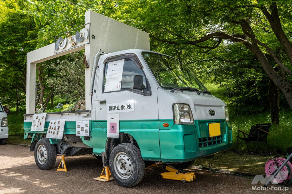 ベース車両はダイハツのハイゼット。高々と組み上げたフレームに負けない荷台の植物がインパクト十分の情景を作り出す。