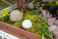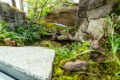 早くて簡単に作れる庭を、というのが制作時のコンセプト。助手席側に大胆に岩を配し、運転席側との高低差で立体的に見せる。なお、植物はポイント的に使用し、あえて茂らせていない。この時短コンセプトは自宅の庭を造る際にも、ぜひ取り入れたいところ。