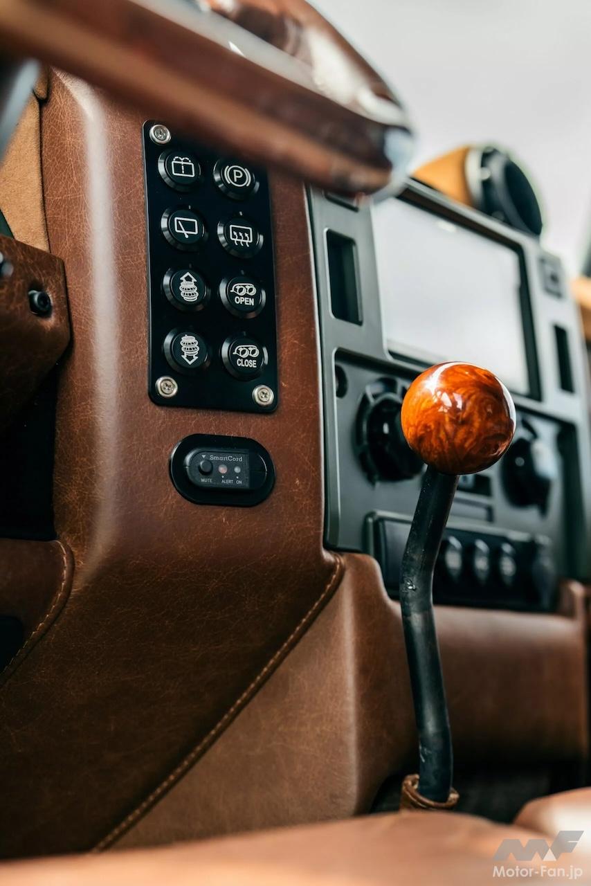 テクノロジーも綿密にアップデートされている。ECDは、Apple CarPlay、Focalスピーカー、ふたつのサブウーファー、そしてパノラミックルーフを備えた新しいインフォテインメントシステムを搭載した。パワーウィンドウ、バックカメラ、ブラインドスポットモニタリングなどの便利な機能がパッケージに加わり、このビルドはパワフルであると同時に快適なものになっており、まさに夢のディフェンダーと言えそうだ。