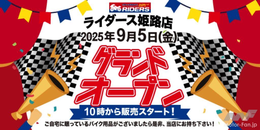 カー&バイク用品のリユース専門店「アップガレージ」ブランドは、2025年9月5日、フランチャイズ店舗「アップガレージライダース姫路店」を兵庫県姫路市の既存店に併設してオープンする。これにより、ブランドの店舗数は全国264店舗に拡大する。姫路城を中心に歴史と自然が調和する同市は、ドライブやツーリングの拠点として人気。今回の新店開業は、地域ライダーの日常に新たな利便性をもたらす狙いがある。営業時間は10時~19時、水曜定休(祝日は営業)。売場面積は約99㎡、駐車場15台を備え、カーライフ・バイクライフを広くサポートする拠点として期待される。