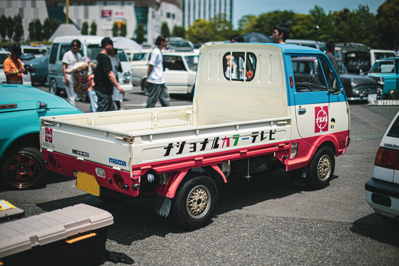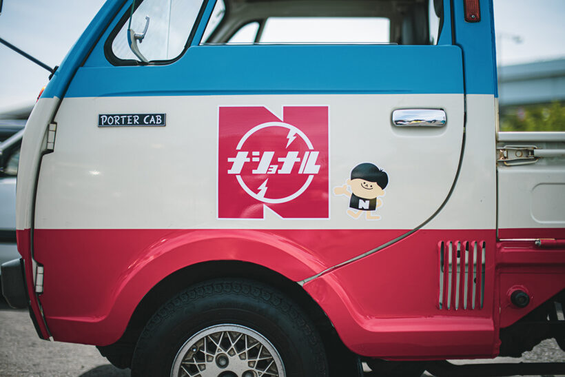 オフ会 懐かしのトリコロールカラーをリアルに再現!昭和感漂う『ポーターキャブ』現代に復活!!【写真・4枚目】 高さや太さにこだわり、吸気ダクトに少しかかるところを面倒臭がらずに施工。上部もウインカーを経由させてバランス感を大事にした。 看板屋さんをやっていたオーナーだけあり、配色やバランス感は申し分ナシ。“昭和の街の電器屋さん”風のコンセプトを見事に表現している。 旧ナショナルゴロやナショナル坊やもあしらったドアパネル。それが逆に新鮮で、可愛さ増し増しに。青・白・赤の3色トリコロールも◎。 この画像の記事を読む