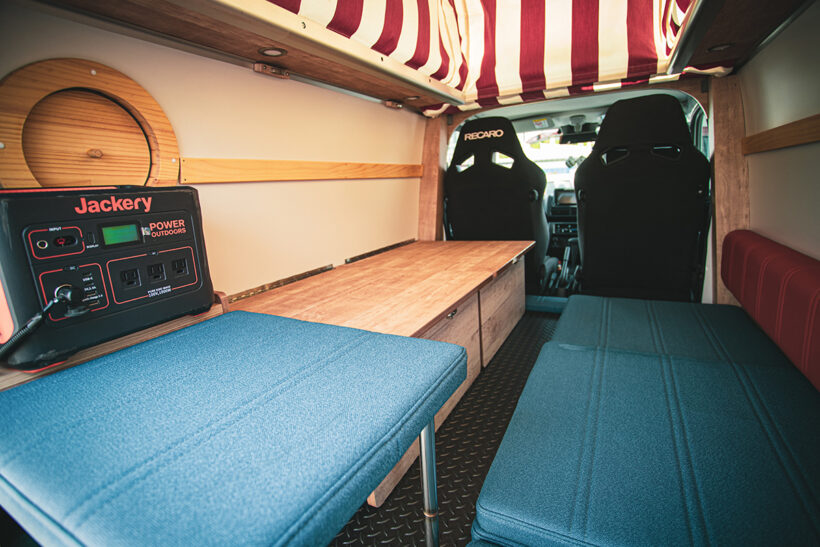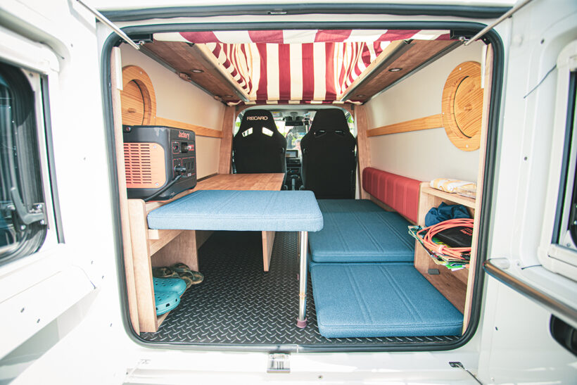 ユーザーカー 荷台をシェル化するとバンより広い!? ポップアップルーフ搭載の軽トラ『ハイゼットトラック』で外遊びを満喫【写真・1枚目】 DAIHATSU/S500P HIJET TRUCK ベースが軽トラゆえにワゴンタイプよりも広いリアスペース。さらにポップアップルーフをつけると他にはない開放感を体感できる。 折りたたみ式を採用したベッドキットを装着。昼間は片側を下ろしてワークスペースを確保してノマドワーカーになるのもイイかも。 この画像の記事を読む