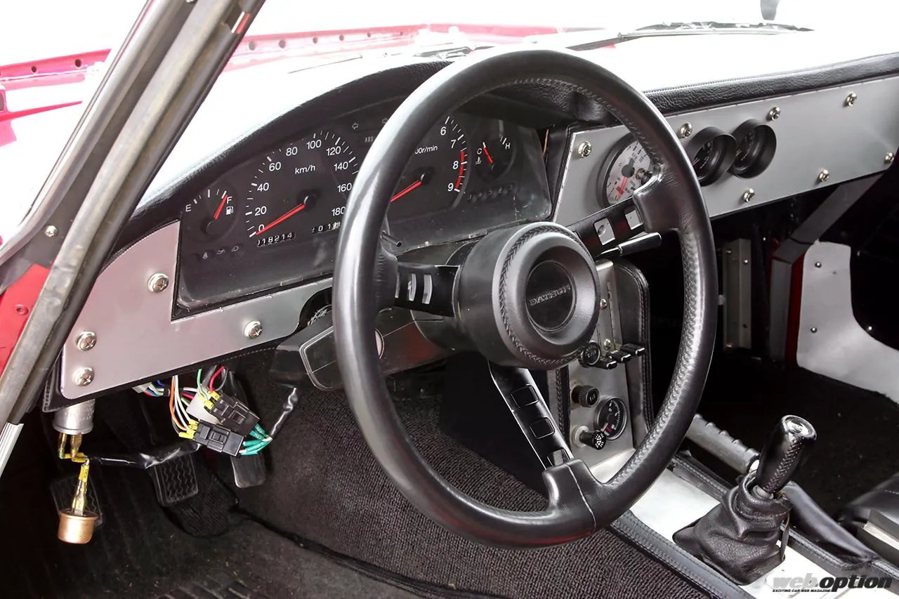 車重910キロに145psというパッケージは現代でも十分通用するものだが、実際には50年以上前のモデルだけに機関のコンディションを保つだけでも一苦労。しかも取材車両は輸出用のため、メンテナンスパーツも簡単には手に入らない状況。そんな背景もあり、趣味と実用性を求めるオーナーは独自のモディファイを続けてきた。