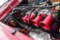 心臓部を見ていく。腰下はシルビア用のSR20ブロックに、RNN14クランクとSR16VEのピストン、旋盤で軽量加工したコンロッドを組み合わせて強化。ヘッドは面研したVEヘッド&ハイカム(IN&EX260度 12mmリフト)をセットし、圧縮比は11.5:1の設定だ。これらの製作は、オーナーが周囲の力を借りながらDIYで行ったというから恐れ入る。