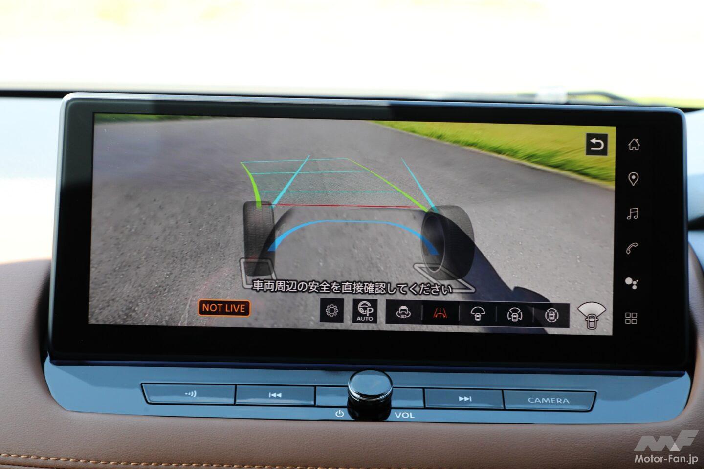 「技術の日産」を実感させる要素も加えられた。日産として国内初となるGoogle搭載のインフォテイメントシステムや、あたかもボンネットを透過したような画像をモニターに映し出す「インジブルフードビュー」を採用。こちらも日産としては国内初の先進技術である。