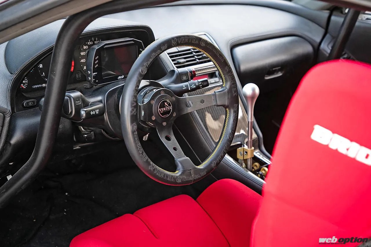 一方、クスコのロールケージが組まれた室内には、ブリッドのプロフェイスとジーグIIIを装備。K20Z1の制御にはホンダータのKProを使用するが、シャーシ関係の動作にはNSXの純正ECUを使用している。ライワイヤのカスタムハーネスも大いに役立った。