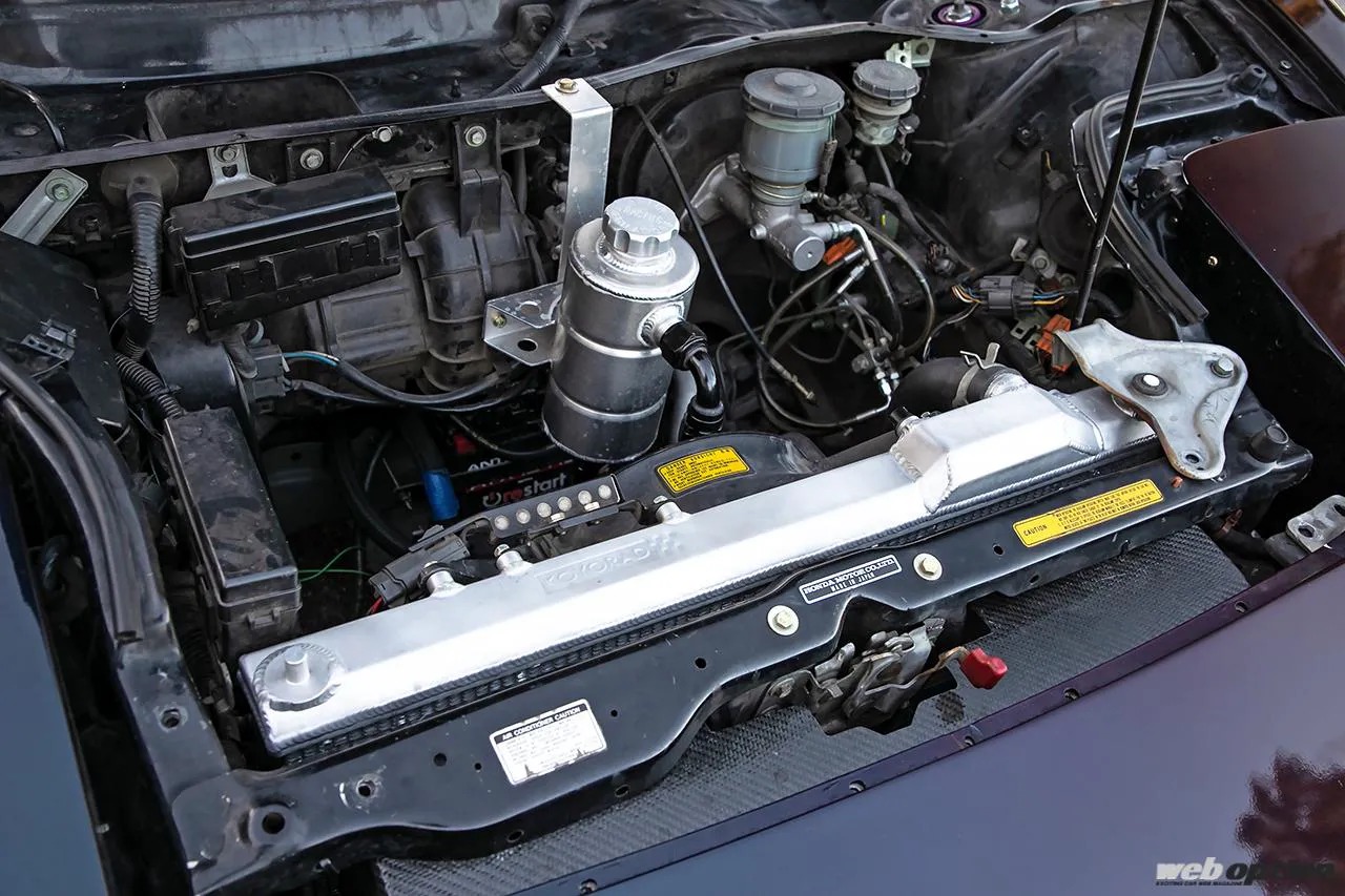 フロントバンパーはI’s Impact、フェンダーはヨコタボディクラフト、サイドスカートはマルガヒルズ、ボンネットはセイボンと、日米のパーツをミックスした。塗装色はお馴染みミッドナイトパープル2。