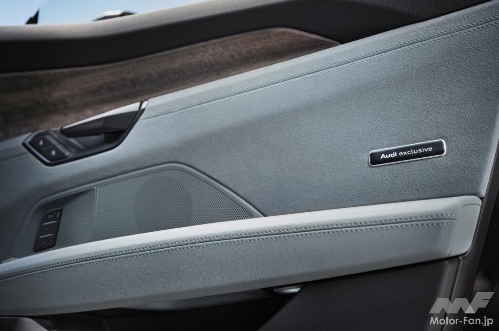 特別装備のAudi exclusive editionのレザーフリーパッケージを採用したスポーツシートには、ダイナミカとカスケード、アーティフィシャルレザーというサステナブルで高品質な素材を組み合わせ、ウォーターフォールステッチが施されているほか、ベンチレーションとマッサージ機能を備え、最上級の快適さを保証する。Audi exclusiveによるデコラティブパネルには、ユーカリアンスラサイトを採用し、上質で落ち着いたキャビンの演出にひと役買っている。