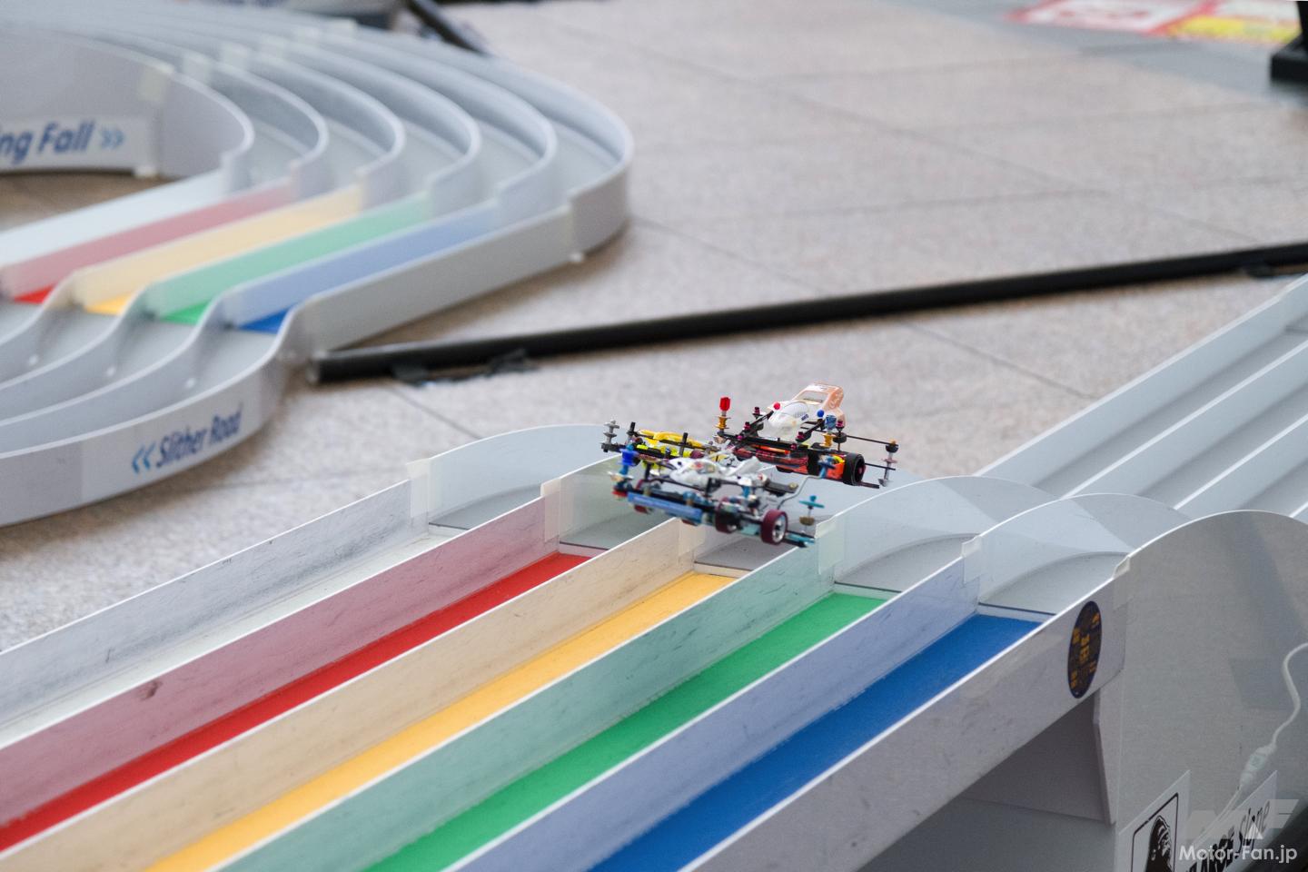 今回の取材では、品川シーサイドフォレストで開催された「ジャパンカップ 東京大会1」の会場を訪れた。7月26~27日の二日間にわたって開催され、合計1757名が参加したという。ここでは主に初心者向けカテゴリーである「トライアルクラス」の様子をじっくりと見学。あまりスピードの出ないモーターのみ搭載可能なクラスだが、それでも多くのマシンがコースアウトや転倒、トラブルによってレース半ばでリタイアしていたのが印象的だ。