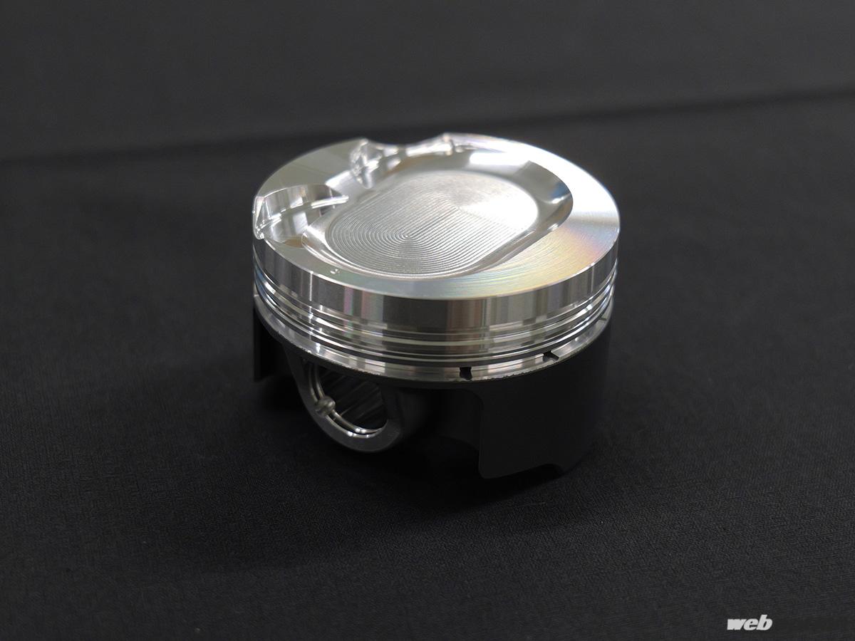 ピストンは、高温強度に優れるジュラルミンA2618材から削り出した逸品だ。ブリッジ構造の採用で剛性を高めている他、2層モリブデンコートで初期なじみ性とフリクション低減を図っているのもポイントだ。