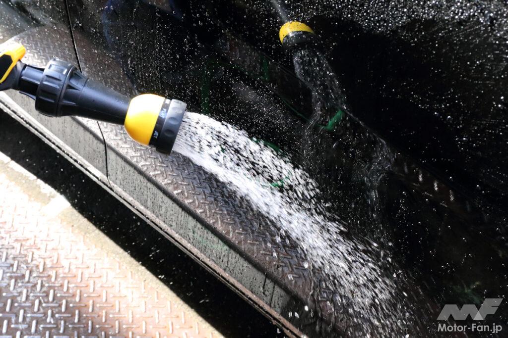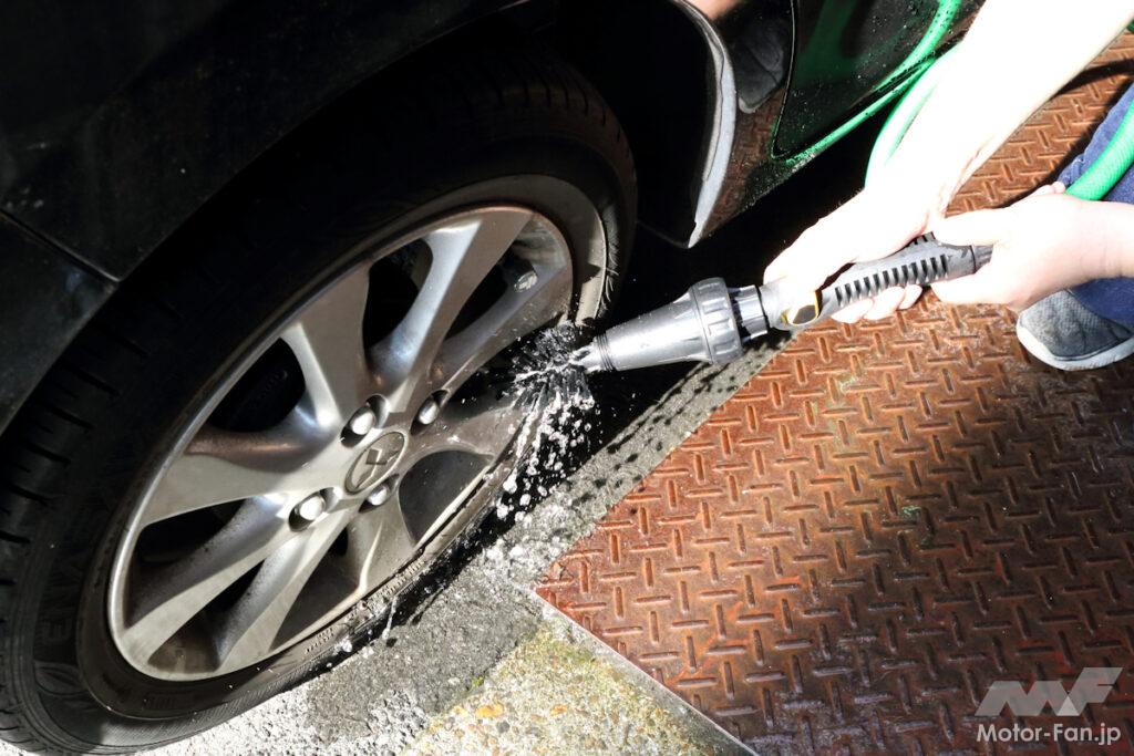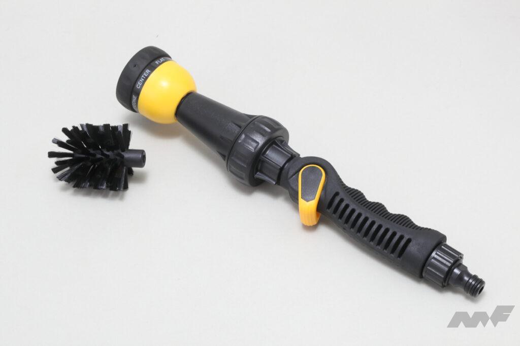 水道に直結するので、高圧洗浄機やポリッシャーのようなパワーは望めないものの、シャワー洗車からブラシ洗浄までこれ1本で使える手軽さは見逃せないポイント。価格もリーズナブルで、ホイールの汚れを落とすときにも結構使え、高圧洗浄機を所持していない人やお手軽洗車ならこれ1本で済むのでお勧めかも。
