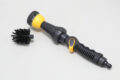 電源不使用で水道ホースにつなげればすぐに使え、ノズルの形状は最近主流となっているストレートタイプ。グリップ部のレバーで無段階の水量調節が可能になっている。水道ホースとの接続は市販のワンタッチコネクター(15mm)がお勧めで、抜ける心配も少ない。マルチノズルをねじって外すと中に四角い突起が現れ、ここに流水ブラシを装着するようになっており、交換自体は非常に簡単だ。