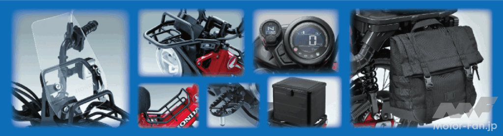 CT125ハンターカブオーナーに人気の純正アクセサリーには、リヤキャリアやトップボックス、アンダーガードなどがある。これらのアイテムは実用性だけでなく、CT125ハンターカブのアドベンチャースタイルをより際立たせる効果も期待できる。