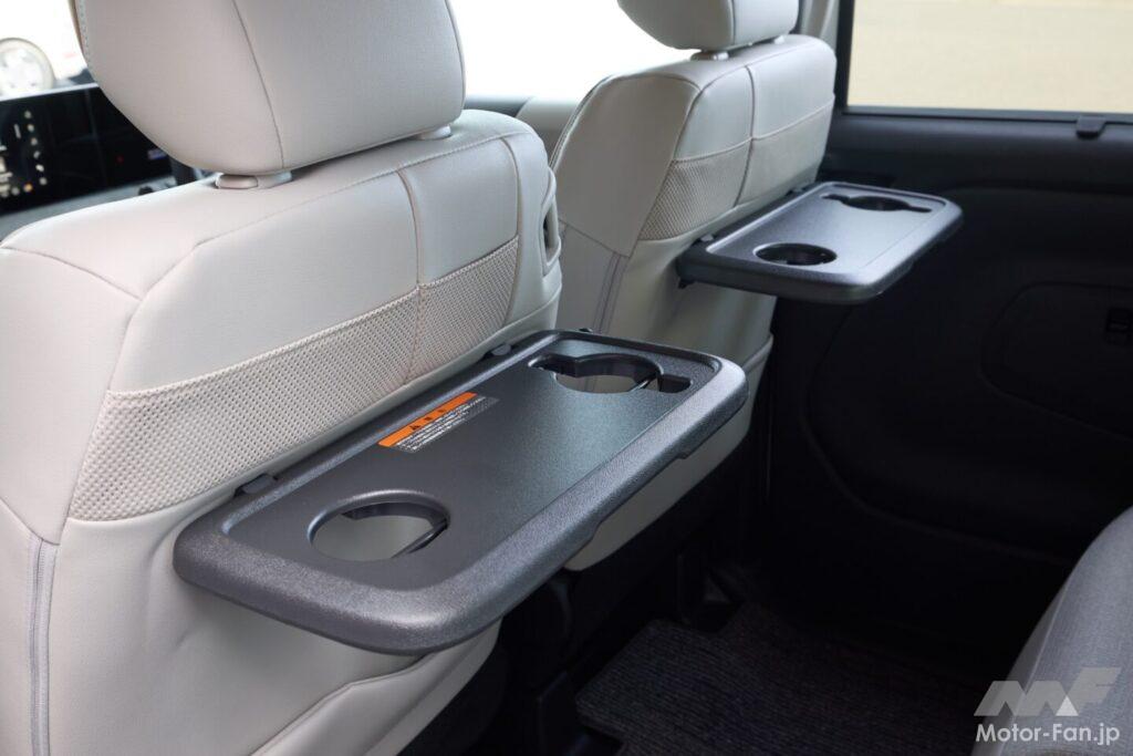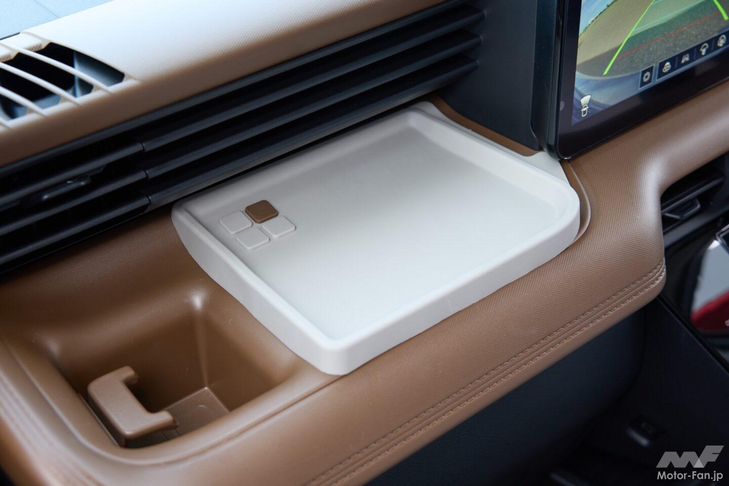収納面も刷新され、紙パック対応のカップホルダーやティッシュボックス収納、スマートフォン置き場、蓋付きアッパーボックスなど多彩なスペースを用意している。