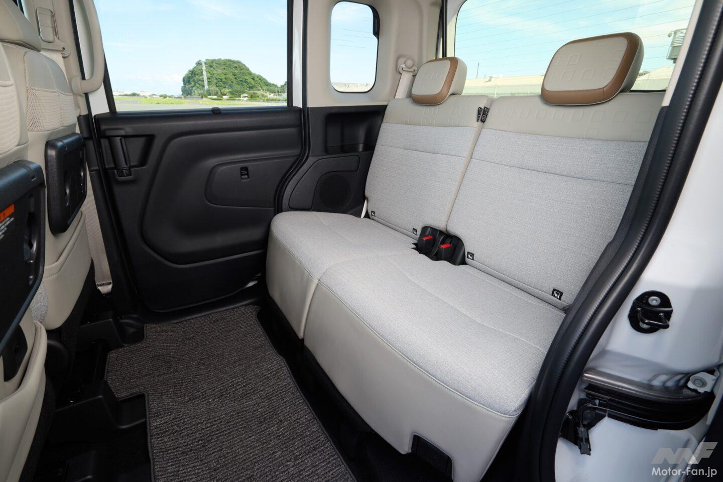 エンジンは燃費と静粛性を高め、さらに防音材を適所に配置。車内では外部の騒音を気にせず会話が楽しめる。シートはメランジ生地を採用し、ソファのような柔らかさを演出。後席は接地面の拡大や高密度ウレタンの採用により、振動を抑えて快適性を向上させた。