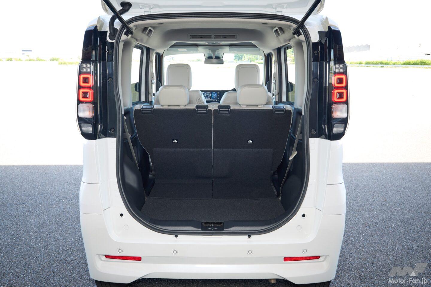 室内長は先代比115mm拡大され、クラストップとなる2315mmに達した。後席のニールームは795mmを確保し、子どもが立って着替えられるほどの余裕を実現。荷室も最大長675mmを誇り、48Lスーツケース4個を積載できる実用性を備える。