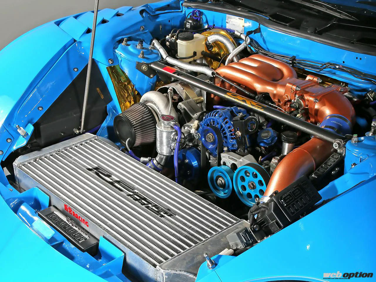 本格的なターボチューニングは、フロントの重量増加というマイナス要素を生む。それではRX-7本来の切れ味がスポイルされてしまうため、エンジン搭載位置は後方に5cm、下方に5cmほど移設している。