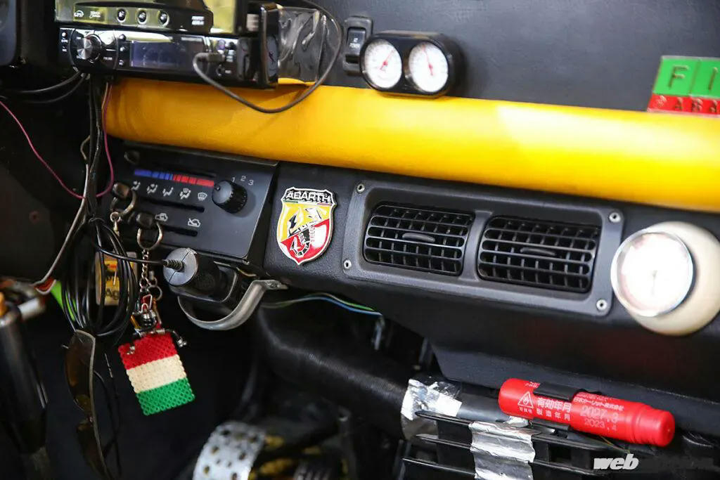 「このパッケージは、2005年に愛知県のチンクエチェント博物館とスーパーオートバックスが共同開発した“マキナ”と呼ばれるコンプリートカーが元祖。ショップ単位でも同じ仕様が複数製作されたのですが、この個体はその中の1台です」とはオーナー。