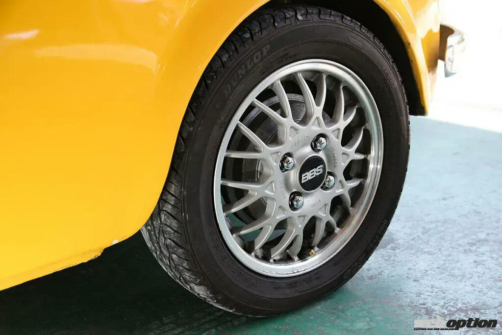 前後の足回りはブレーキまで含めてサンバー化されているため、走行性能はかなり近代的。ハブがPCD100の4Hになったことでホイールの選択肢も増し、取材時はヴィヴィオの純正オプションだった13×5.0JのBBSがセットされていた。タイヤサイズは145/65R13だ。