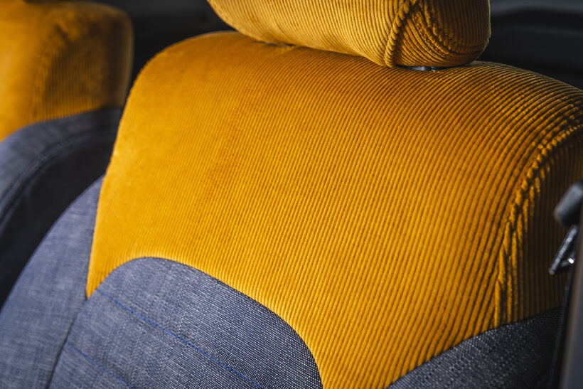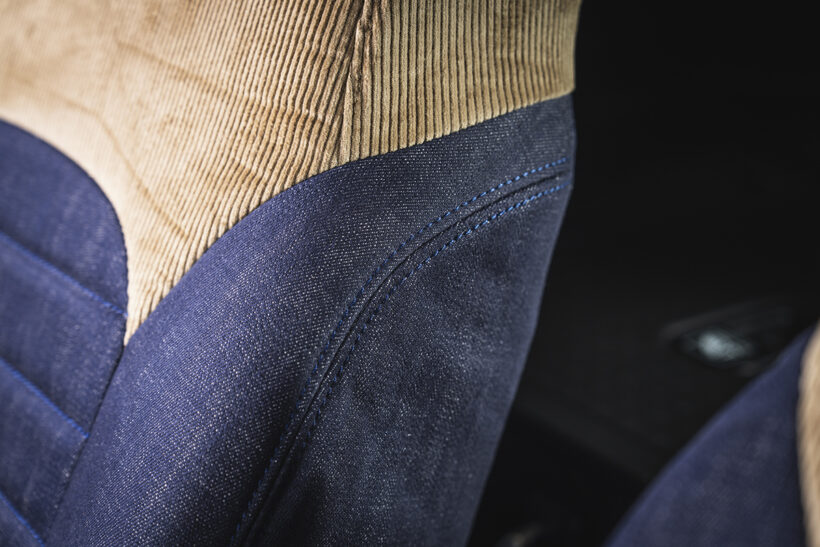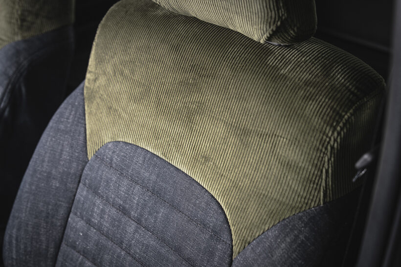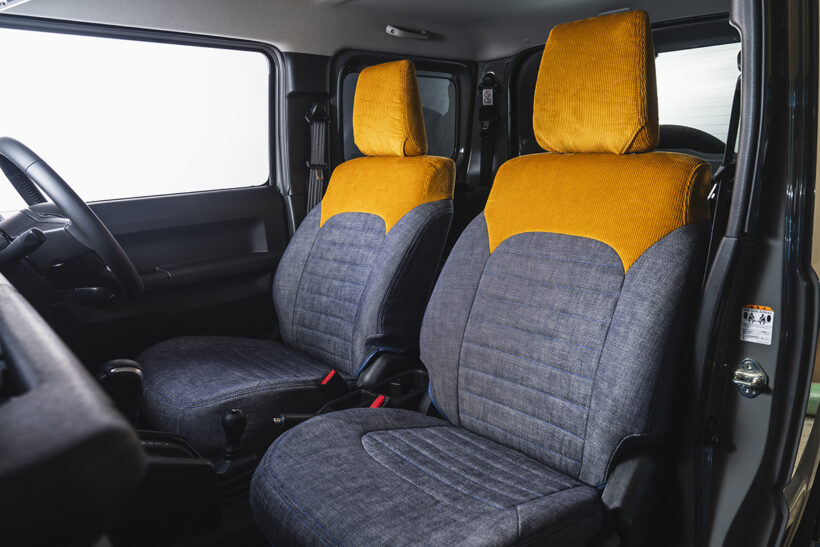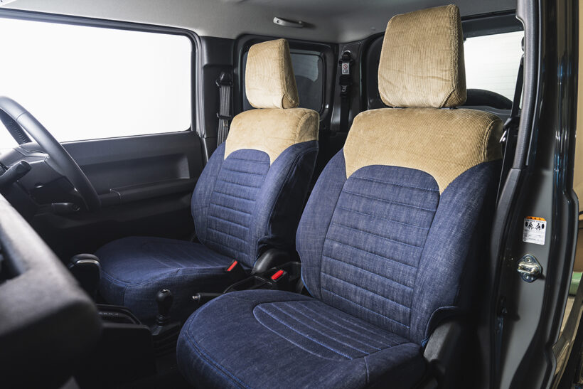 内装 キャメルもイイよ! デニムとコーデュロイのツイン生地! カウボーイの『ジムニーノマド』専用シートカバーはレトロで愛嬌たっぷり!【写真・1枚目】 【デニムブラック×コーデュロイオリーブ】 デニムカラーは落ち着いたブラック。真っ黒という感じではなく、デニムブルーを黒染めしたような絶妙な色合い。渋く高級感のあるオリーブのコーデュロイとよくマッチしている。 デニムインディゴブルー×コーデュロイキャメルノンウォッシュデニムを彷彿させる深いインディゴブルーに、鮮やかなキャメルがよく映える。ひと味違う個性を出したい人や、アメリカンカジュアルなムードが好みな人にピッタリ。 畝(うね)が1本1本ハッキリした立体的なコーデュロイ生地。キャメルカラーは特に陰影が付きやすいのでアピール度も高い。 他のカラーと同様、ヘッドレスト部分はコーデュロイのみでカバー。柔らかく肌触りも良く、快適性UPにも貢献。 ステッチカラーはデニムよりも明るめの色味。あえてまったくの同色にはせず、軽くコントラストを付けている。 【デニムブルー×コーデュロイベージュ】スタンダードなデニムブルーにはベージュのコーデュロイ生地をセット。いい意味でクセがなく、どんなボディ色にも似合う。Gジャンのようなアパレルっぽい雰囲気もポイントだ。 コーデュロイ生地はいずれもアースカラー。キャンプギアでも定番の色なので、アウトドア好きにも刺さりそう。 要所には耐久性に優れたダブルステッチを。型崩れを防いで長く品質をキープ。さり気ないアクセントとしても効果を発揮する。 背面には大型のシートバックポケットを備える。純正のように助手席だけでなく、運転席にも付くのが嬉しい。 光の当たり加減で複雑な表情を見せる上質なコーデュロイ生地。スエード系の素材とはまた違う味わいがある。 中央は横パターンのステッチ、コーナーはダブルステッチ仕上げ。デニム部には伸縮性を持たせているので、フィッティングも良好。 引き締まり感のあるデニムブラックは、ジムニーの純正内装色とも融和性高し。自然な装着感を楽しめる。 グレー×ブラック アイボリー×ブラック グリーン×ブラック この画像の記事を読む