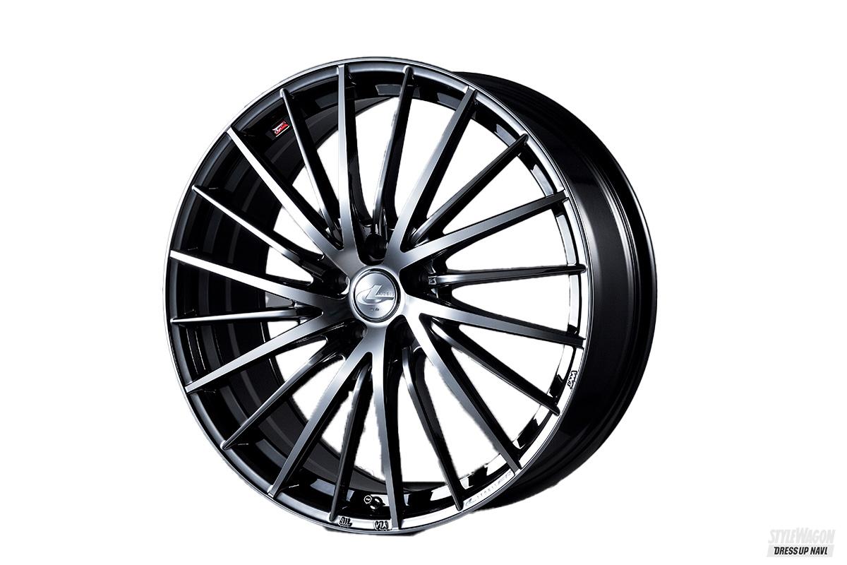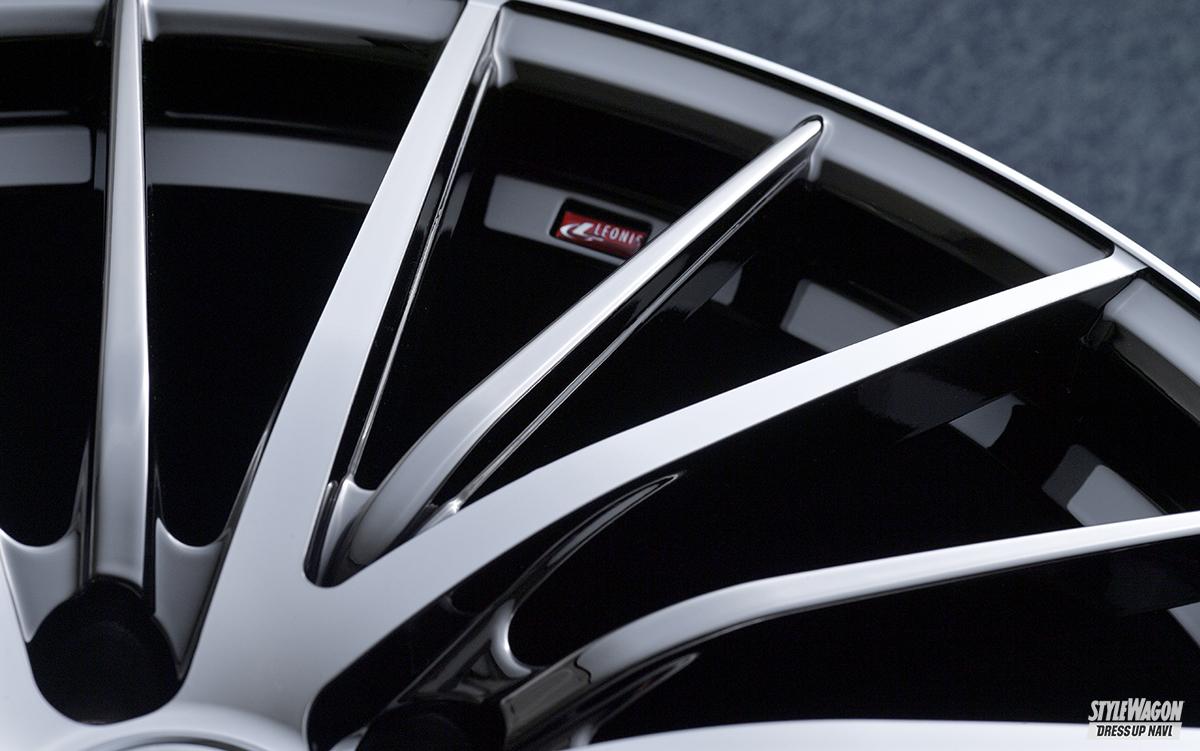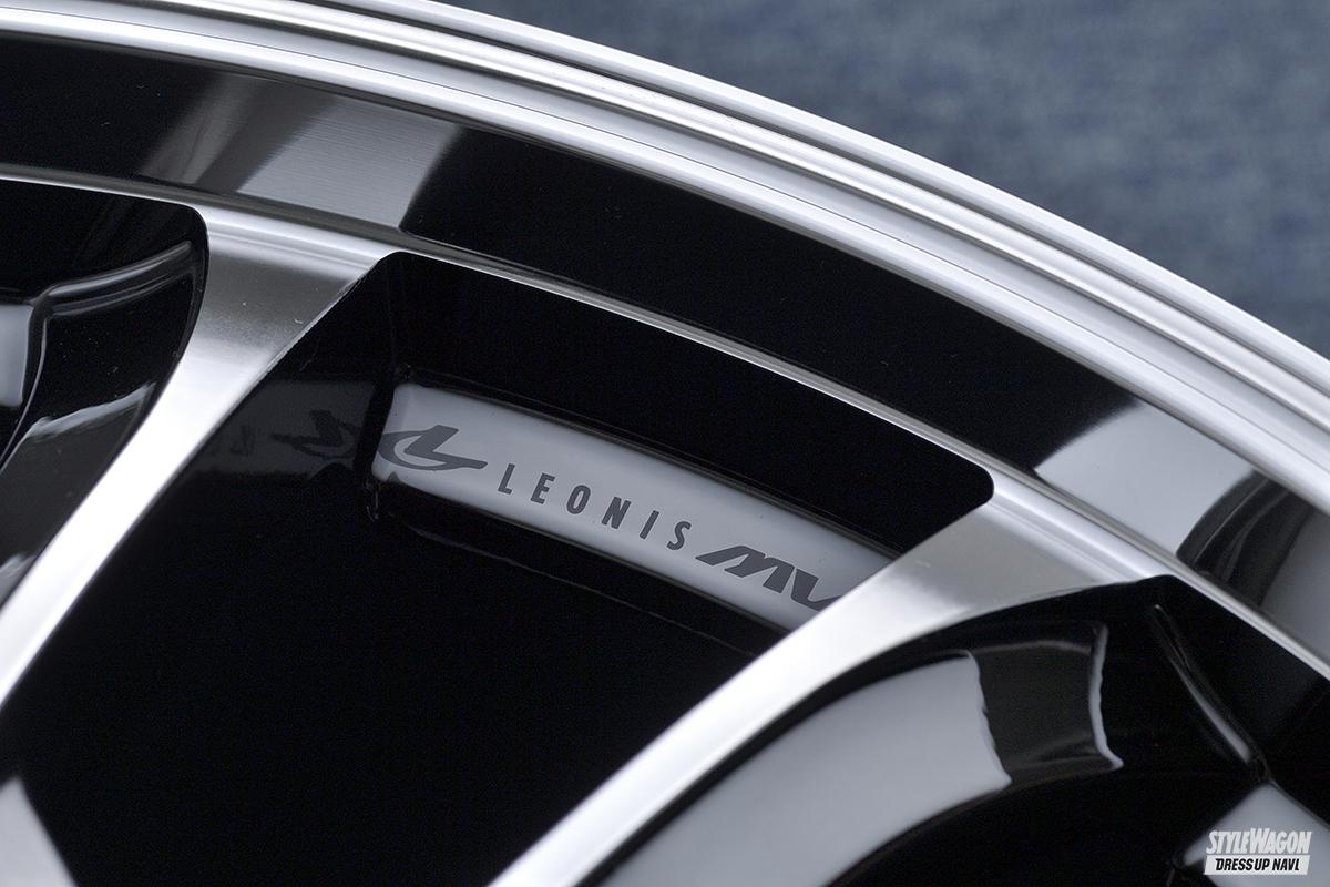 レオニスMVはメッシュデザインがベース。ただし5本のV字スポークの中腹を別のV字スポークが貫通したような斬新な造形で、レオニスらしい立体感を堪能できる個性派。ミラーカットを強調するためにあえてリムあり形状としたのもこだわりで、アルヴェルに相応しい高級な光輝感も備わる。