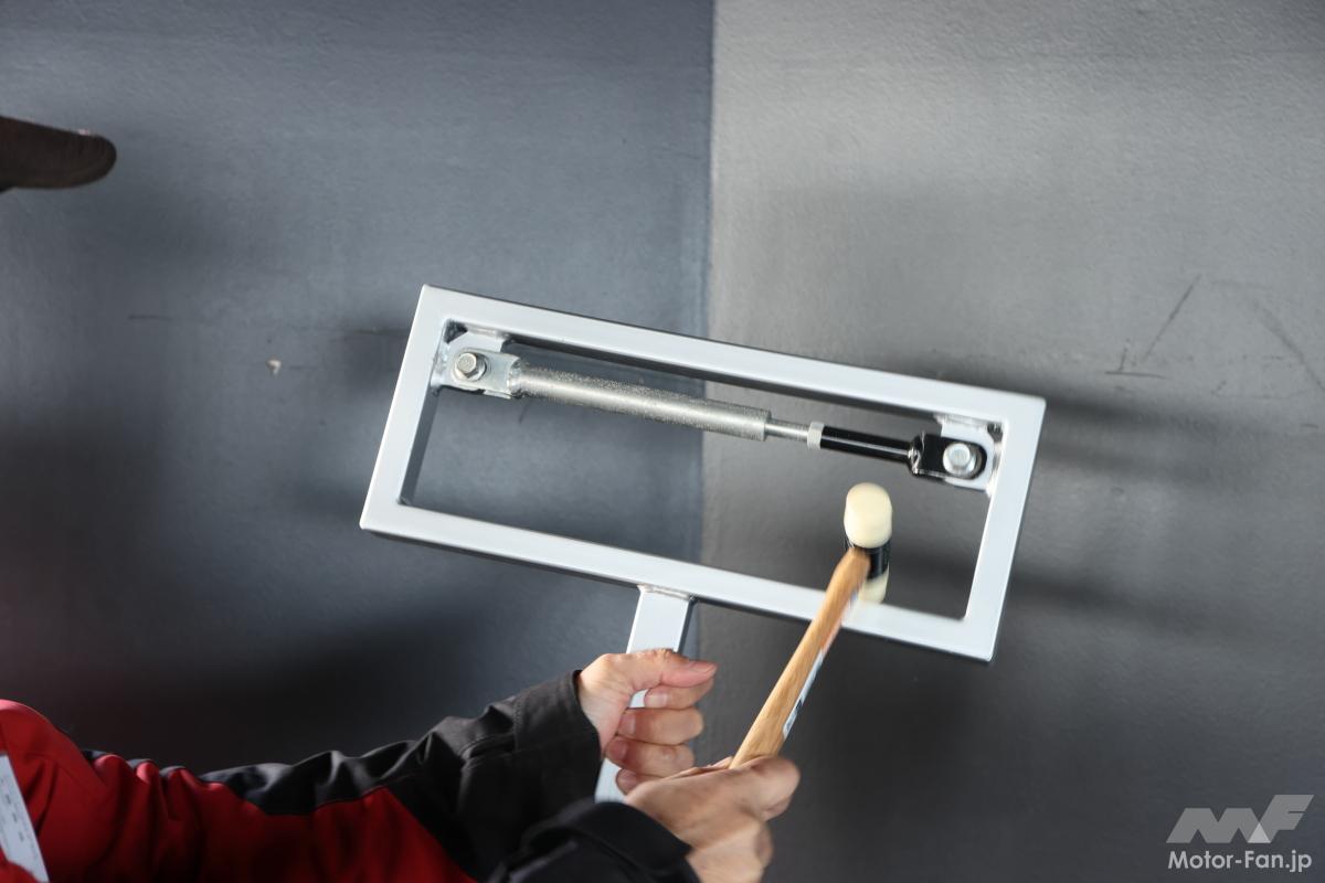 上はパフォーマンスダンパーの効果をわかりやすく体験するためのキットで、金属の枠を叩いた際の振動の違いを感じることができる。なるほど、パフォーマンスダンパーを装着すると、その振動収束のスピードが段違いであることがはっきりとわかった。
