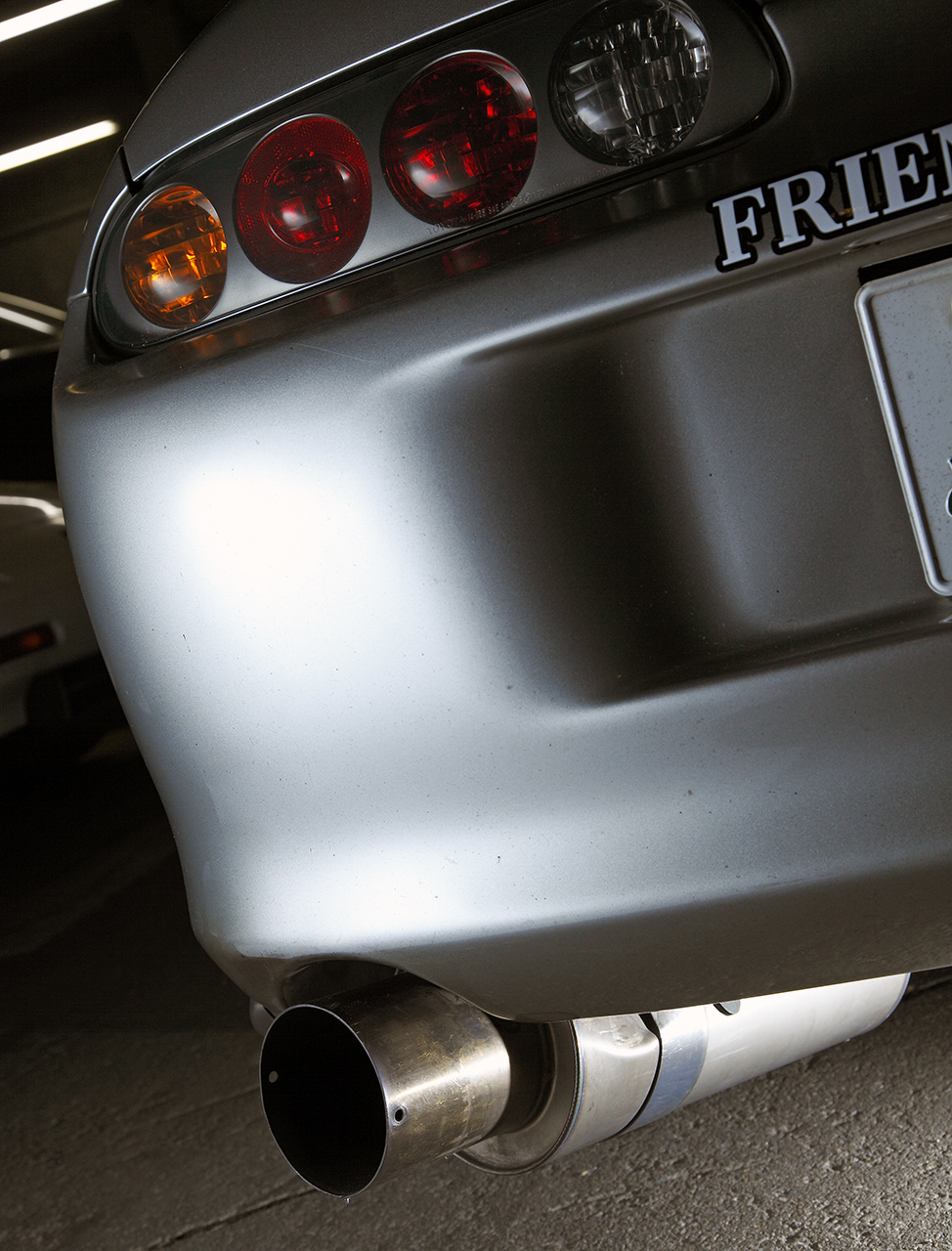 排気系は高回転域での効率を重視して、フレンズオリジナルのフロントパイプにHKSマフラーという組み合わせ。