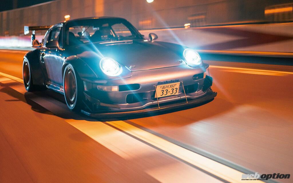 数あるコンテンツの中でWEB OPTIONが特に注目したのは、ストリートステージをターゲットに手が入れられたチューンドポルシェだ。首都高C1最速と呼ばれるGT2レーシング仕様のエクステリアが眩しい993Tは、1996年式の993ターボがベース。