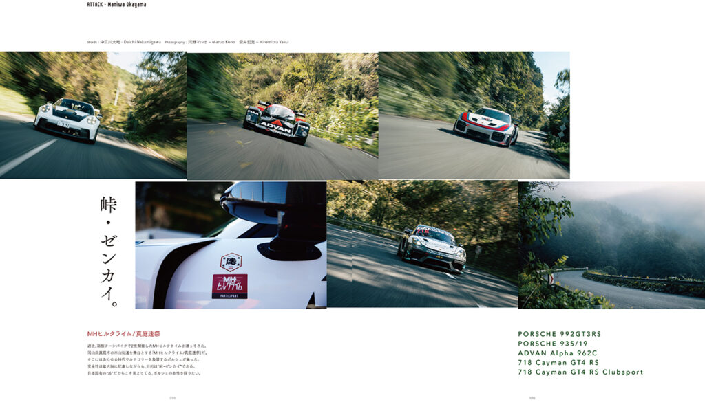 その他、最新の992GT3RSを筆頭に、935/19、962C、718ケイマンGT4RS / CSが「峠」をゼンカイで駆け抜ける「MHヒルクライム・真庭速祭」の公道インプレッションも必読だ。日本の公道ワインディングでのポルシェ全開レポートが読めるのは、間違いなく「ポルヘッド」だけだろう。