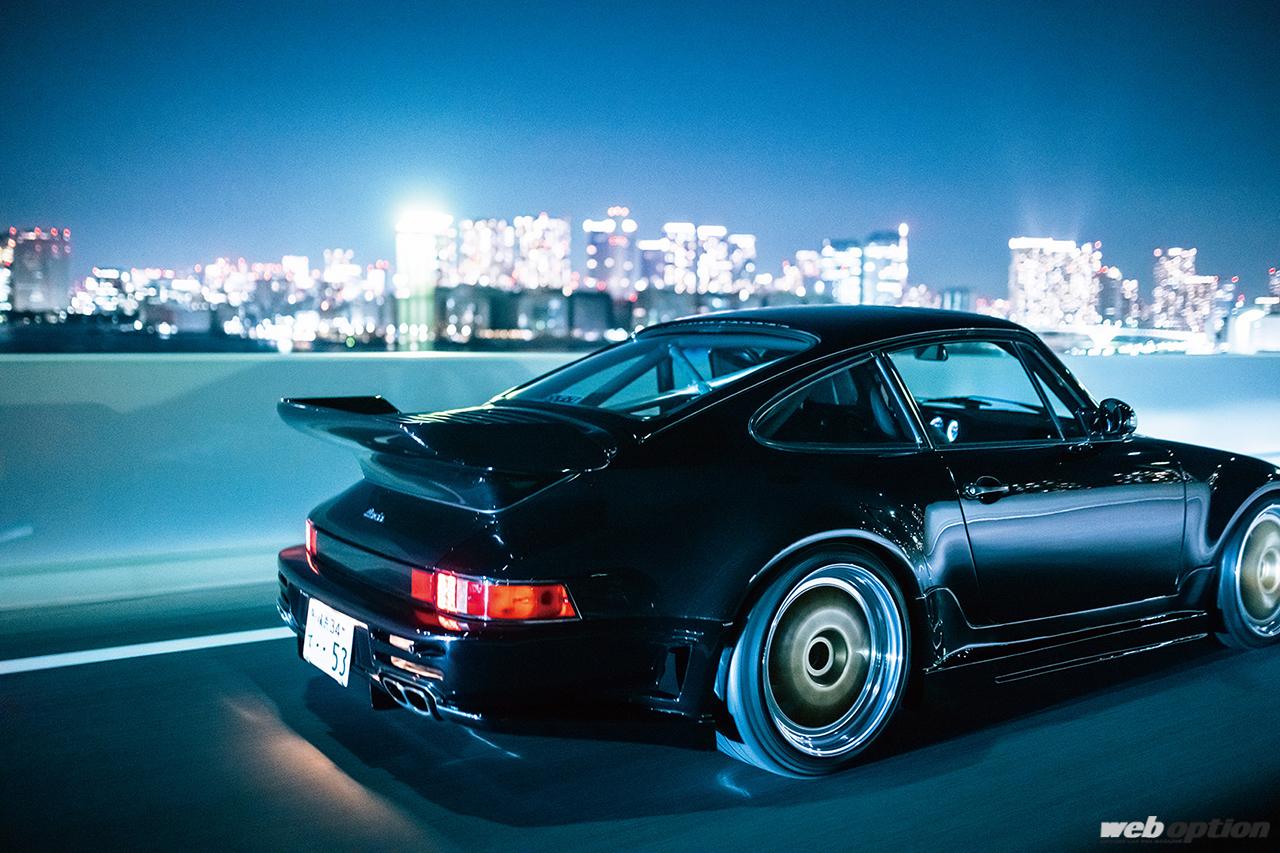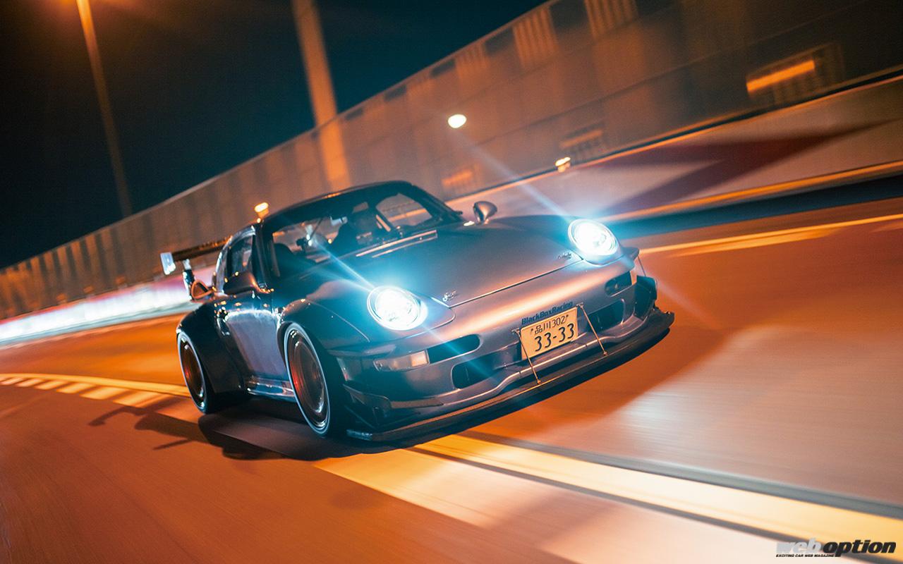 数あるコンテンツの中でWEB OPTIONが特に注目したのは、ストリートステージをターゲットに手が入れられたチューンドポルシェだ。首都高C1最速と呼ばれるGT2レーシング仕様のエクステリアが眩しい993Tは、1996年式の993ターボがベース。