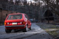 エクステリアも独特だ。アメリカ仕様は角型ヘッドライトと大型バンパーが特徴だが、欧州仕様の1977年式GTIをモチーフにしたスキンチェンジを実施。丸型ヘッドライトやスモールバンパーを装着し、GTI純正色のロイヤルレッドでペイントした。