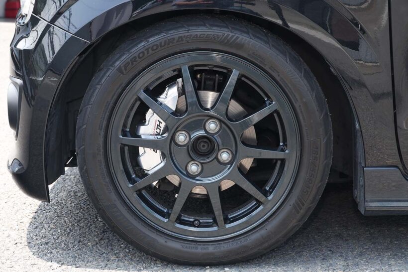 もうひとつの大きな特徴が「純正ホイールに収まる」こと。スリムな設計によって、アルトワークスなら純正ホイールでも干渉せず装着可能。冬季にスタッドレスへ履き替えるユーザーにも嬉しいポイントだ。