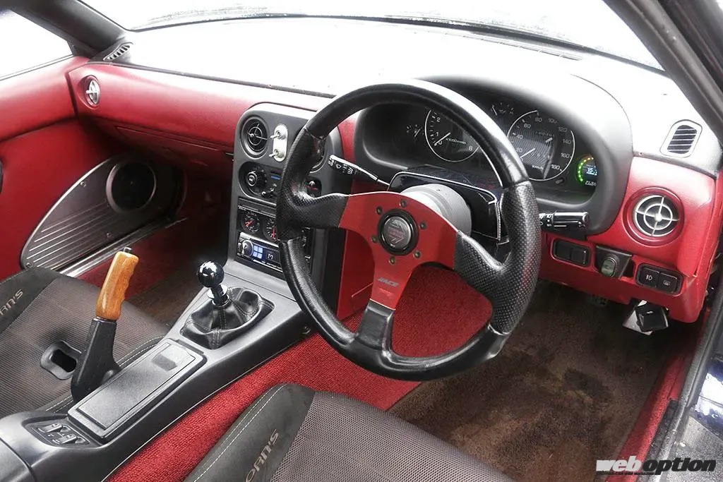 「何と言っても全てがアナログなところが今のクルマにはない魅力。今回持ち込んだのは、1995年に登場した1000台限定のRリミテッドベースで、4スロ化を中心に官能的な走りと快適性を追求しています」とは、カーメイクコーンズの飯塚さん。