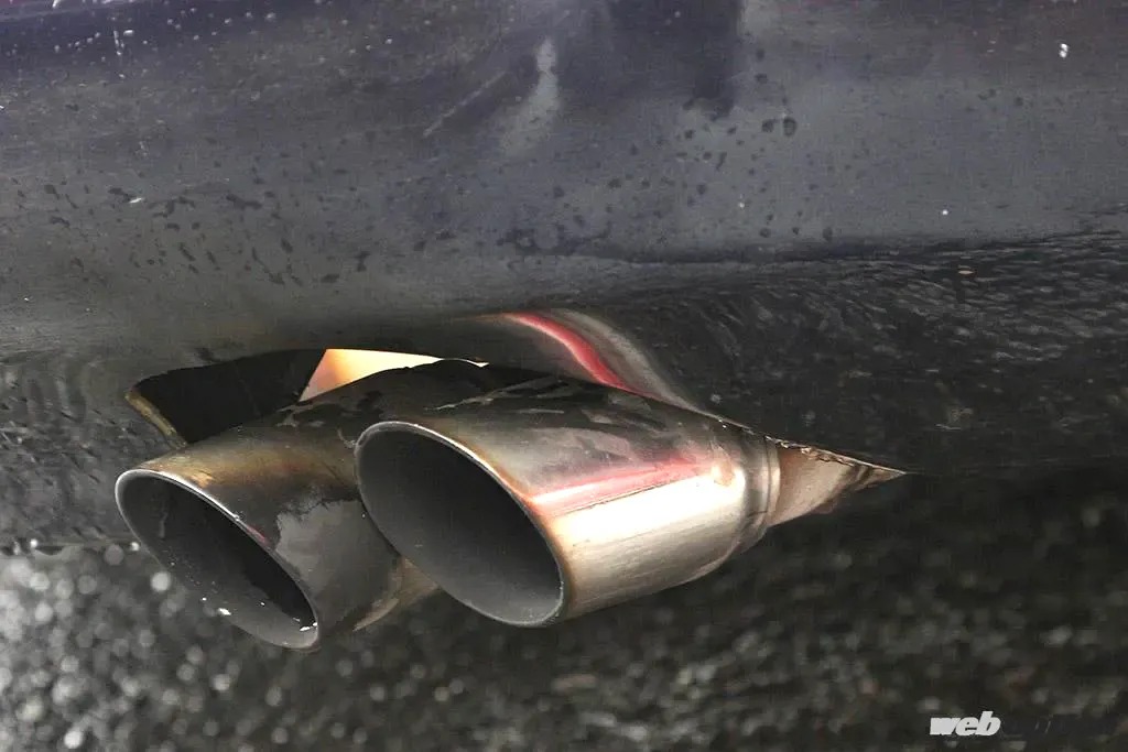 ストレートパイプの2本出しテールが特徴的なマフラーは、コーンズのバージョン3。シングルテールタイプもラインナップされている。上流部にはマルハモータースのスポーツ触媒も装備する車検対応のスペックだ。