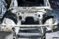 ドナーかと思うほど大ダメージを受けたこのボディは、鋭意修復中のもの。数多くの板金屋から修復不可能と断られて途方に暮れていたオーナーを、確かな技術とノウハウで救うのである。
