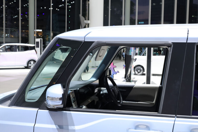 新型 新型ルークス、発売されたらここを見よ! ちょっとめずらしい新しいルークスの注目ポイント、あんなとこ、こんなとこ・・・【写真・17枚目】 新型ルークス。 2本スポークのハンドル。 これまでの慣例とは逆に、左スポークにアダプティブクルーズコントロール関連、右メーター操作/オーディオ/ハンズフリーのスイッチが廃された。 筆者が前のクルマで使っていた、汎用クルーズコントロールのスイッチ。スイッチ本体の都合上、ワイパースイッチレバーの下に置いたからハンドル左の操作だった(スイッチがぼけているのは、スイッチのために撮った写真ではないからです。)。 新型ルークスのACCスイッチ。 中央のダイヤルボタンの左傾斜を見落としてはならない。 右手親指の動きに沿うので実に使いやすいのだ。 フロントサブピラーのトリムが、天井とインパネ手前も含めてデザインされている。 そうはいっても、インパネ側はメーター&ナビ部分で分断されている。 サンバイザー未使用状態の天井側も途切れ途切れになっている。フロントガラス天地が大きいことに伴い、バイザーだって上下寸が大きいからだ。 ピラートリムが茶色使用になると、1周トリムが木枠のようになって、これはこれで別のおもしろさが現れる。 バイザーを下げると、トリムにホルダーがあった。 バイザー本体にもホルダーがあるので使い分けするのによさそうだ。 ヘッドライトやグリルエンボスの「かどまる四角」。 リヤランプの「かどまる四角」。 ホイールの「かどまる四角」。 ヘッドレストにも「かどまる四角」。 そしてタコメータープロッティングの「かどまる四角」。 ルークスのタコメーターそのタテヨコ比率から、3代目サニー(B210)のメーターを思い出した。 まだしばらく現役の、いま販売中の現行ルークスのサイド視。 新型ルークスのサイド視。 両車重ねてみる。全長はもちろんのこと、ホイールベースも変わっていないようだ。 ラップ写真はわかりにくいだろうから輪郭線を与えてみた。赤ラインが新型、青ラインが現行型だ。 全体の違いは一目瞭然。 新型のセンターコンソール部。この斜面の下辺あたりが室内長計測の出発点になるはずだが・・・ こちら現行型。いくらか水平気味だ。この傾斜角の違いが室内長+115mmの秘密なのかどうかはよくわからない。 新型ルークス斜め前方から。サブガラス上辺の奇妙な斜めにまず目が行った。 サブガラス上辺の勾配に無理を感じる。なぜこうなったのか? 現行ルークスのリヤスライドドアガラス。 新型ルークスのリヤスライドドアガラス。 両車重ねてみたら、ガラスおよびその周辺形状がぴったり一致する! 現行ルークスのフロントピラー周辺。 新型ルークスのフロントピラー周辺。 新型はフロントガラス&ピラーが起き上がったことがわかる。 同じく輪郭線付与。 車体を消す。これだけ違うのだ。 この部分の車内からの見え方は自然だ。ガラス周囲がトリムで隠れているからだ。 右側がスカスカの写真なのは、車両後端位置を写真中央に持ってきたかったため。 スライドドアを開けると・・・ こうなる。後ろは後端ギリギリ。これを守りながらフロントドア開口寸も守り、スライドドア開口寸を最大限確保するのはパズルだったと思う。その挙句に得た650mmがクラストップなら拍手で称えたい。 これでもいくらか拡大した(と思われる)、新型のエンジンルーム。 新型のフロント部。 現行型のフロント部。まだバンパーの突き出しが残っている。 新型。まっすぐ! この画像の記事を読む