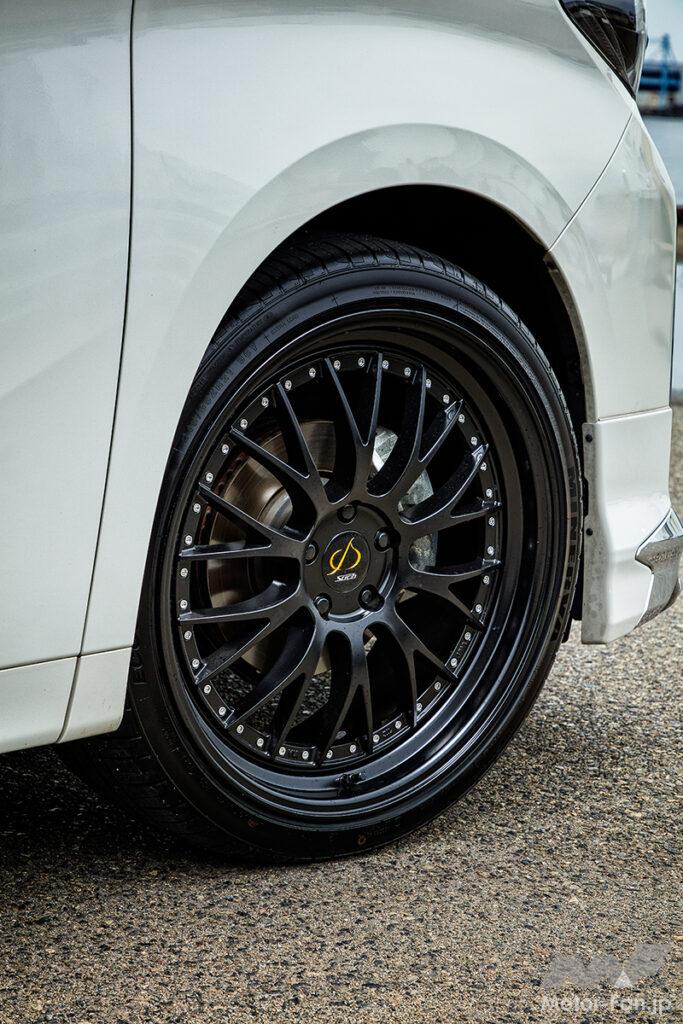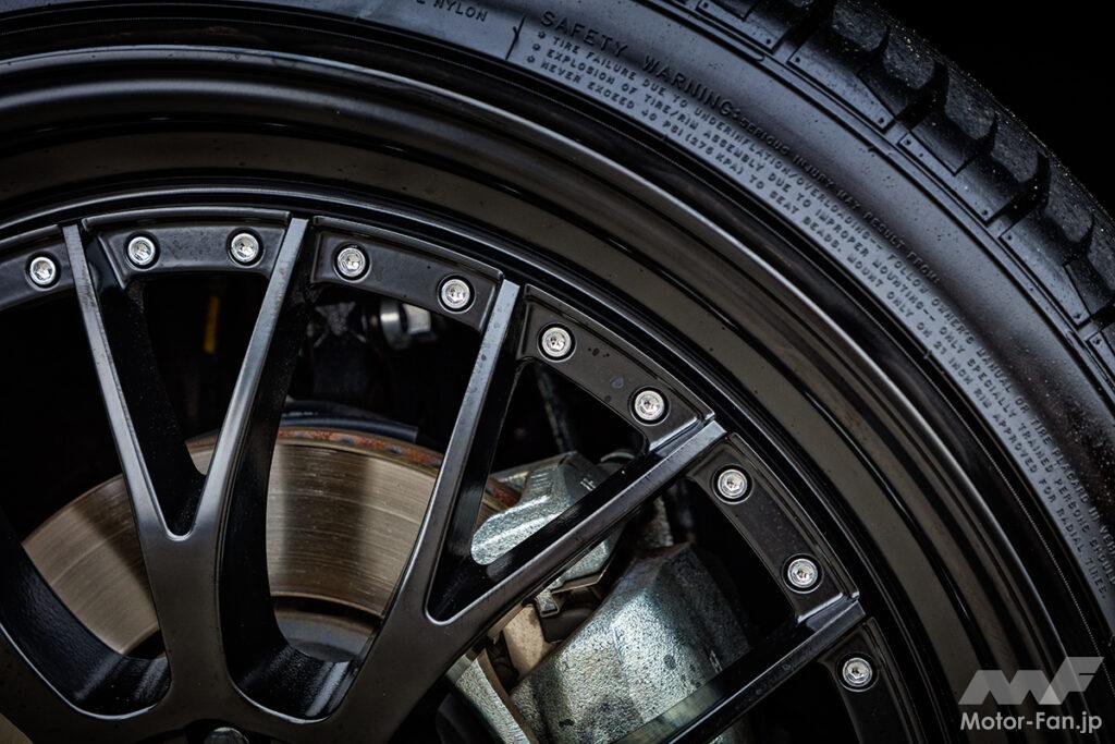 圧巻なのはそのリムの深さ。21インチなら8・5Jで52・2㎜、20インチなら9・5Jでなんと最大85・1㎜と強烈。往年のセダンメイクと言えば、足元は大きく、深くが常套手段で、そんな段付きディープリムシルエットを再現できるのもこのNRならでは。高品位メッシュとド迫力リムのコラボ、満喫可。