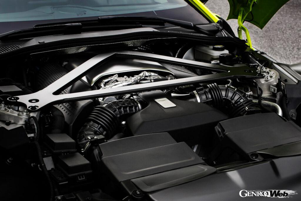エンジンは提携関係にあるメルセデスAMG製のM178型4.0リッターV型8気筒DOHCツインターボユニット。DB11 V8と同様、敢えてウエットサンプ化した上でECUなどに独自のチューンを施しているが、最高出力こそ510PSと変わらないものの、最大トルクはDB11より10Nmアップの685Nmとなっている。