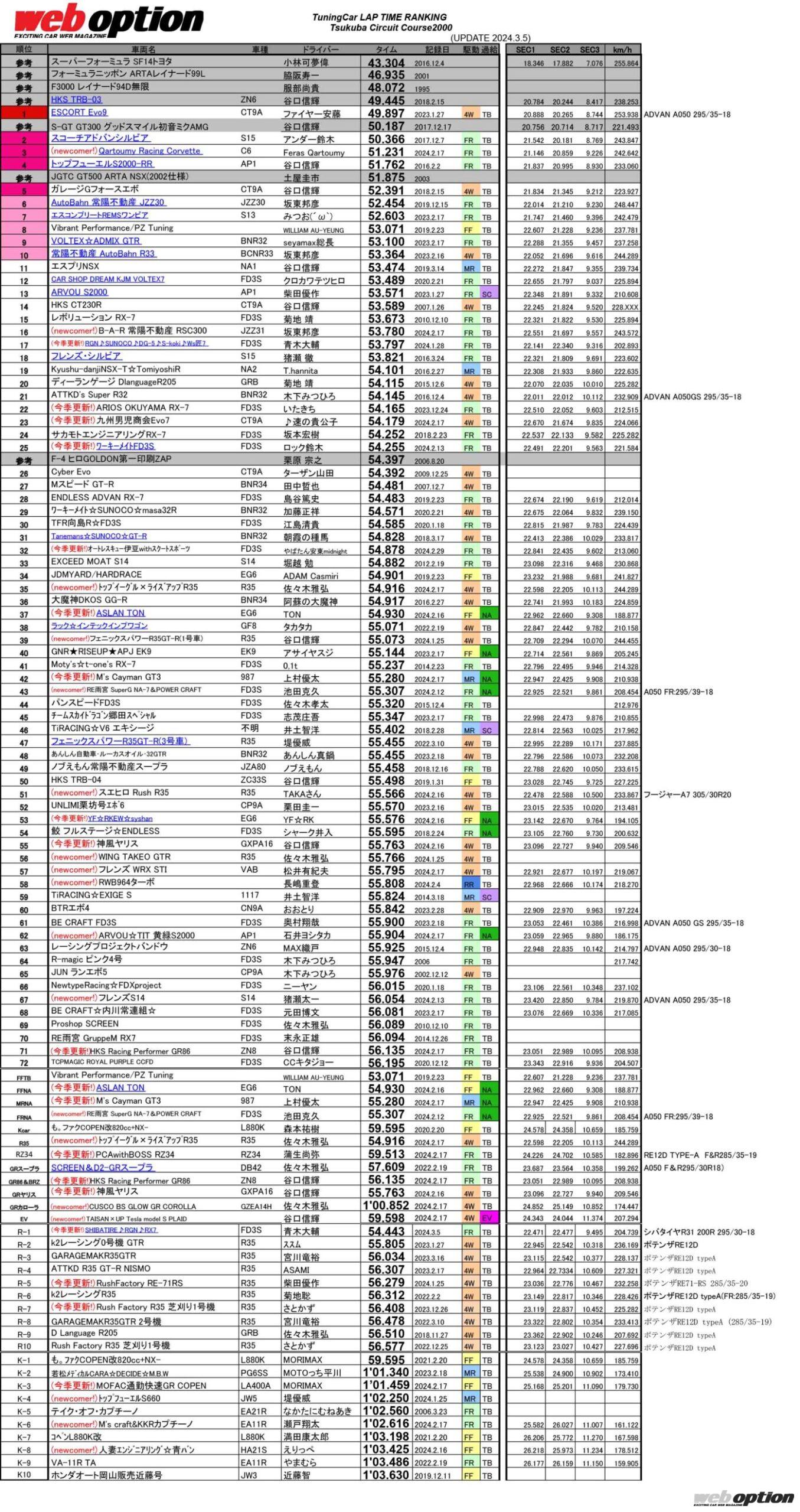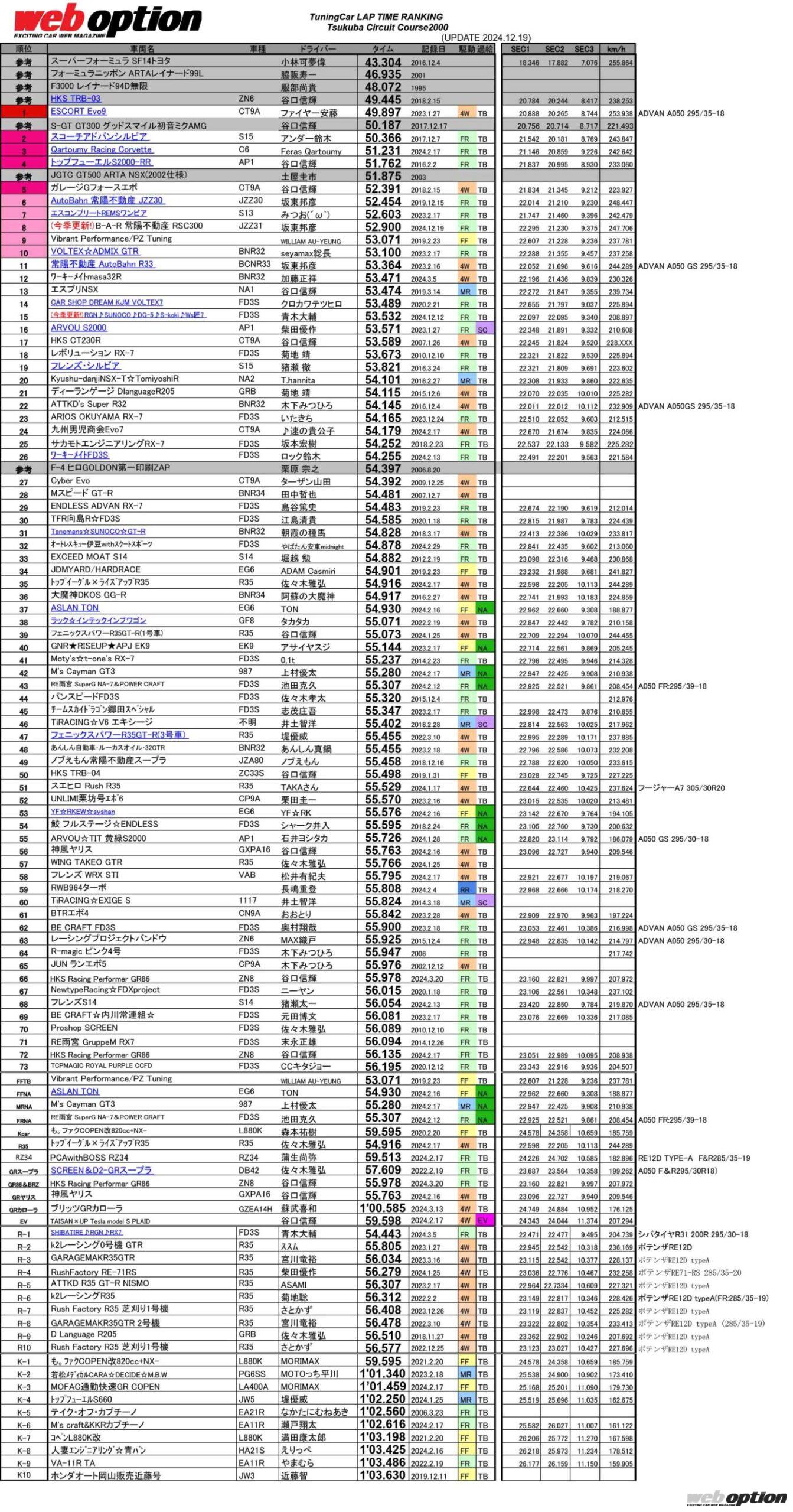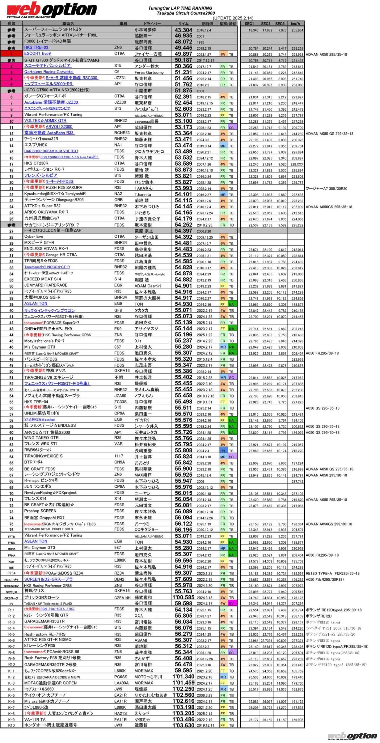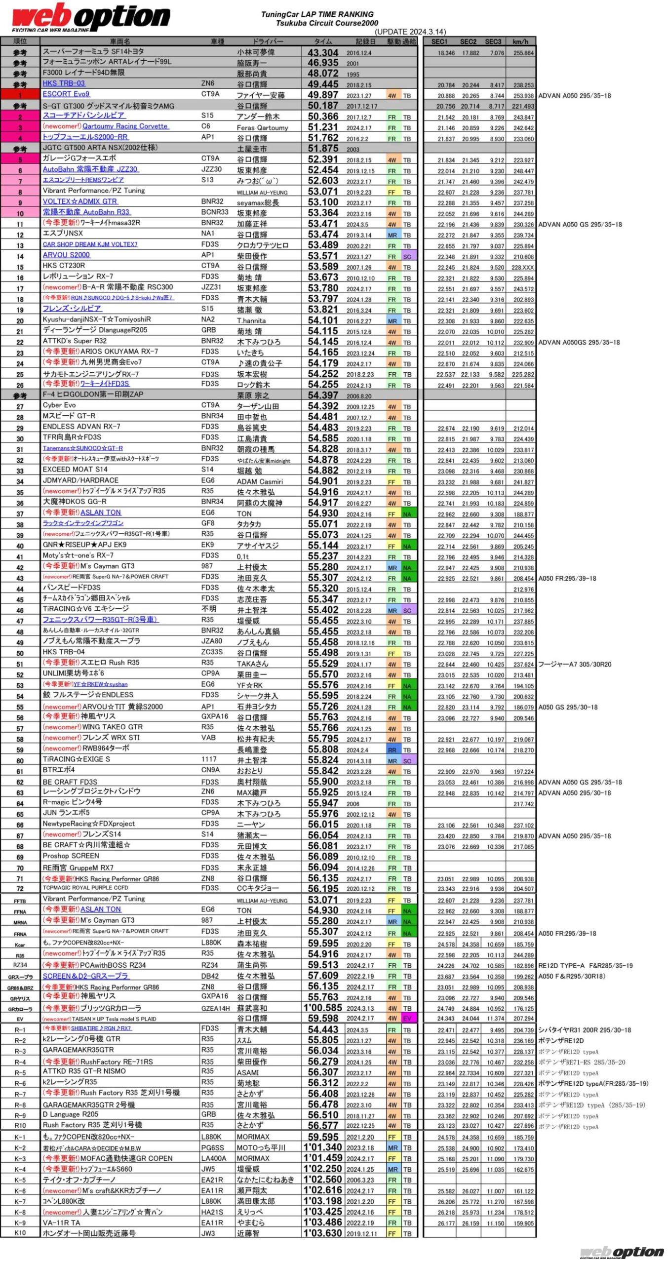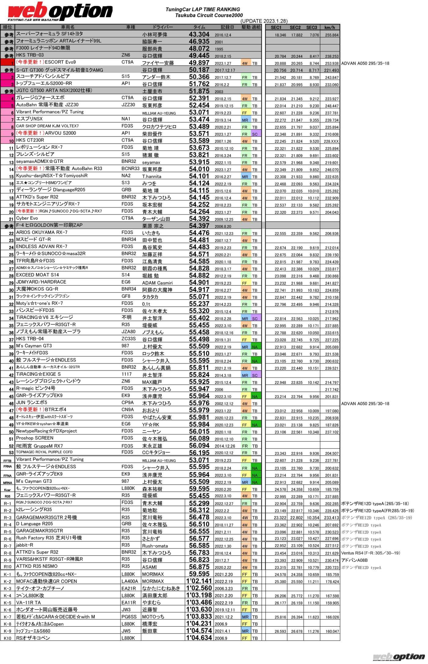 UNLIMITEDWORKS走行会の結果を反映しました