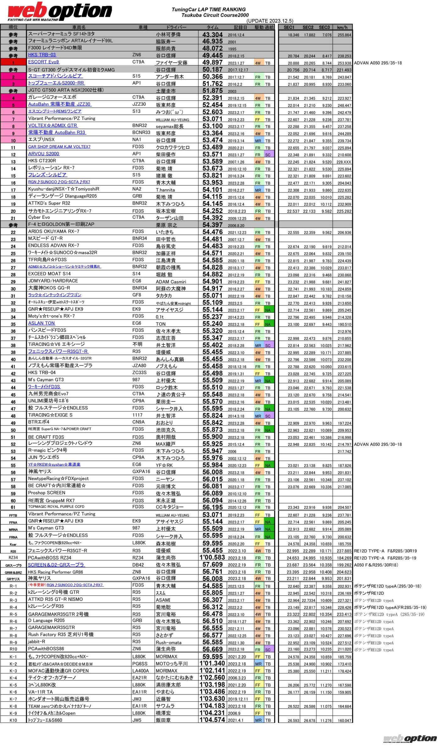 そんなマシンたちが刻んだラップタイムをランキング形式で紹介!!