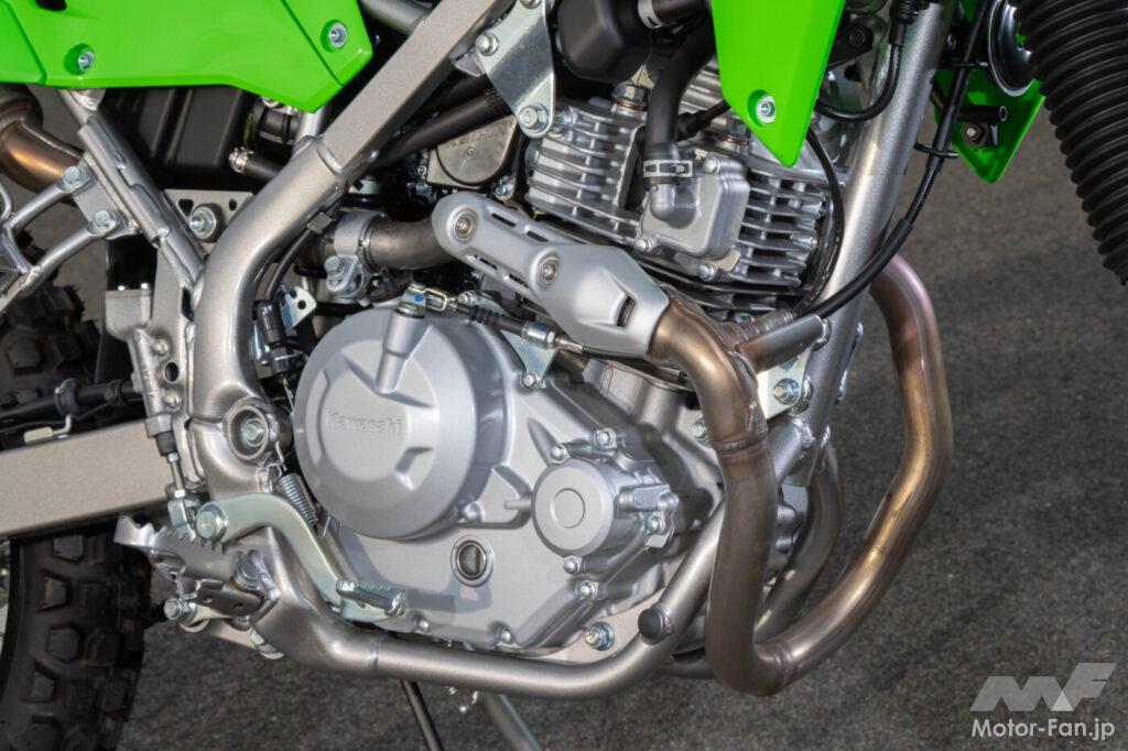 シンプルなメカニズムが魅力的。空冷OHC 2バルブの単気筒エンジンは、スクエアに近いショートストロークタイプ。排気量は232ccだ。