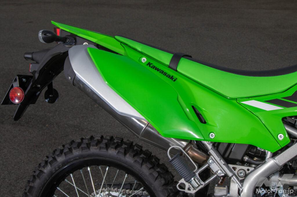 足つき性と快適性、そして操縦のしやすさを熟慮して新設計されたシート。なおKLX230のシートは、ウレタン厚を従来比で6mmプラスされている。
