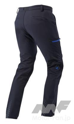 RY2001は、柔らかな着心地と高い防寒性を両立した直履きタイプのライディングパンツ。防風性とストレッチ性を兼ね備えたソフトシェル素材に加え、裏地にはフリース生地を使用し、長時間のライディングでも快適さを維持する。膝にはCEレベル2の衝撃吸収プロテクターを内蔵し、腰両サイドにはフォームパッドを装備。別売りプロテクターとの交換でさらなる安全性強化も可能だ。反射材も備え、夜間走行時の視認性を確保するなど、安全面にも配慮されている。カラーはブラック×ブルーの1色展開。