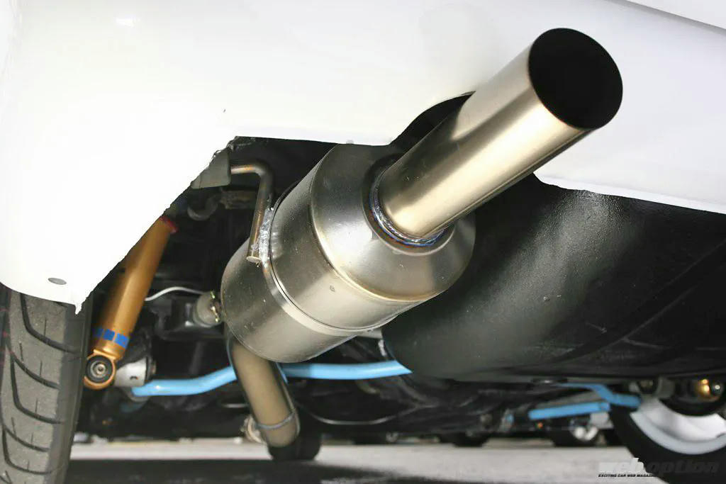 足回りは全長調整式のワンオフ車高調を装備し、車高は日常で不具合が出ないよう高めにセット。エキゾーストマフラーもスモーキー永田がチタン材から製作した60φストレートのスペシャルだ。
