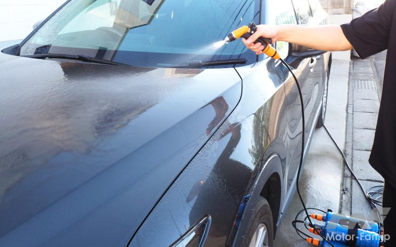 純水による洗車作業は話題となっており、純水使用を売りにする洗車場も増えてきているほど。水に不純物が含まれないことで水シミとも呼ばれるウォータースポットがボディ上に残らず、拭き上げ作業も手早く簡単に行なえるようになる。もちろんシャンプー洗車やコーティング施工の仕上がりもクリアだ。