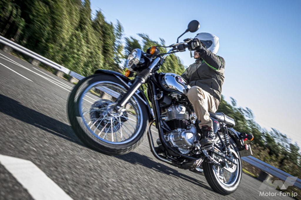 66×73mmというボア・ストロークがSGとほぼ共通するロングストロークタイプのエンジンと蔵型シートの採用はまさに「メグロSG」の再来と言える存在感を誇り、穏やかで逞しい独特のトルク感が、実用域で豊かな乗り味を提供してくれた。