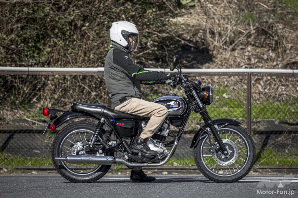 あえてエストレアの記憶と比較すると、よりリズミカルで快活、弾けるような歯切れの良い連続音が印象的で、吹き上がりのシャープさもなかなかのレベル。レスポンスの俊敏さという意味ではKLXとは明確に異なり、少しドロドロと重さを伴うフィーリングだった。低回転域から頼れるトルクが柔軟に発揮され発進操作やシフトワーク、渋滞路でのノロノロ走行も含めてとても扱いやすい。