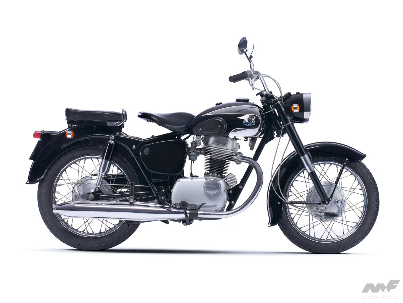 メグロは戦前から有力メーカーのひとつとして知られ終戦後はレース活動も含めて精力的な新機種開発を展開。SGに至る250ccモデルではOHVエンジンを搭載するジュニアSシリーズ(1953~1962年)が侮れない評価を集めたそう。それは進化熟成を重ねS8まで発展した。