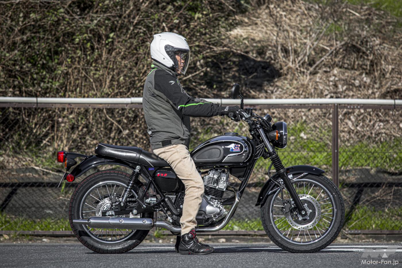 開発リーダーの高谷聡志さんにお話を伺うと「エストレヤも含めてロングストローク・エンジンにあった乗り味と、メグロらしい力強いスポーツ性を意識しました。」と言う。