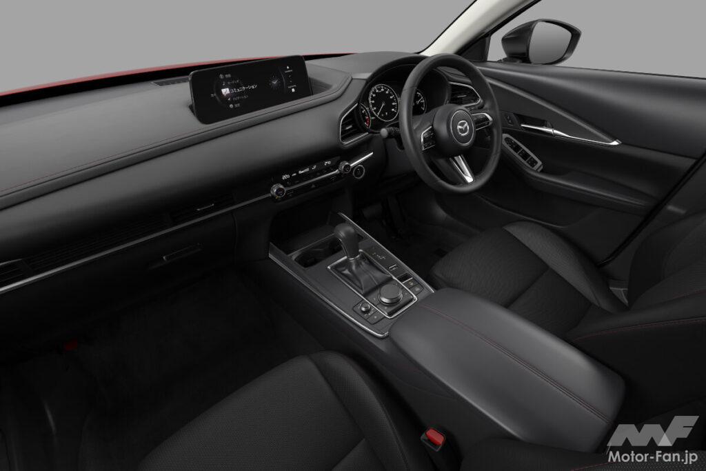 プラットフォームは同社のCX-3と共通だが、ボディサイズはCX-30の方がやや大きい全長4395mm×全幅1795mm×全高1540mmであり、それを活かした伸びやかなエクステリアデザインと広い荷室空間、そしてモダンなインテリアデザインがCX-30の特徴となる。